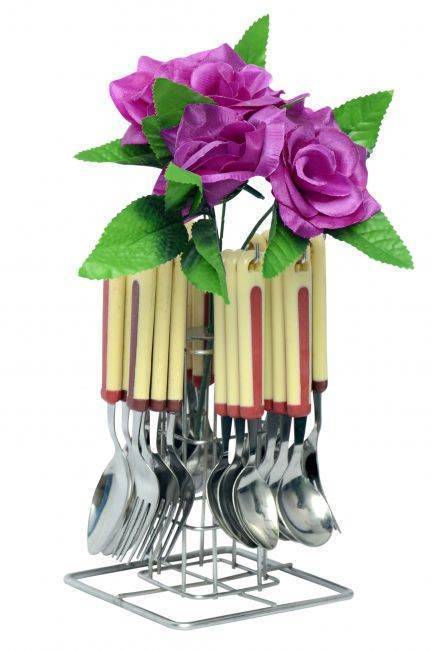 Tactware 24 Pcs Cutlery Set With Steel Stand - Combination Of Style With Durability 6 Big Spoons 6 Dinner Spoup 6 Forks 6 Small Spoons 1 Stylish Stand Made Of Steel For Long Durability All Spoons, Spoup And Forks Are Made Of Pure Stainless Steel With Food Grade Plastic Handle Very Beautiful And Useful Heavy Gauge Of Sheet Of Used Must In Your Home. Tactware Cutlery set have very good quality because the weight of the our products is always more then the other trader product. Note :- Color Will Send As Per Stock Available